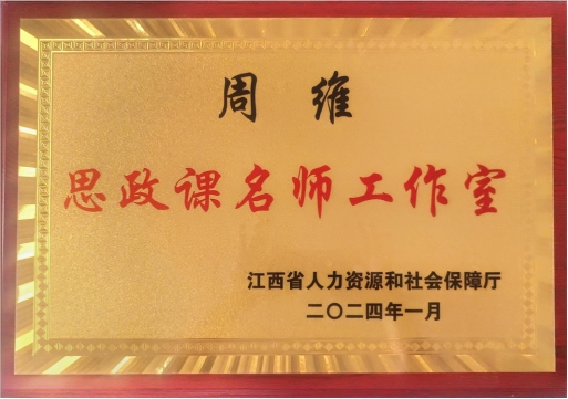 “周维思政课名师工作室”成立于2022年4月,2024年1月经江西省人力资源和社会保障厅授予“省级思政课名师工作室”称号。该工作室致力于打造一个集教学、科研、培训等功能于一体的思想政治理论课教师合作共同体,其核心宗旨在于促进思政课教师专业发展,提升队伍整体素质,着力培养有影响力、高水平的教学名师;同时,积极推动思政课教学改革,鼓励教学方法创新,推广先进教学经验,实现优质资源共享,以全面提升教学质量和实效。