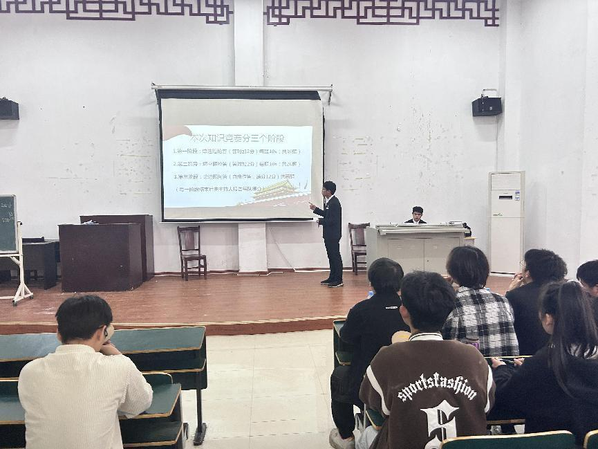 赛前,校团委副书记为竞赛开幕致辞,他表示,希望同学们能够借助这次比赛深入学习党的二十大精神,提升自己的知识储备和文化素养,同时他也对队员们提出三个要求,一是要坚定理想信念,加强学习,提升自身综合素质;二是要定期总结学习成果,盘点自己的不足,提升学习成效;三是要将所思所学应用在生活中、学习上,不断创造新的业绩。最后他祝比赛顺利进行,各位参赛队员都能够满载而归。