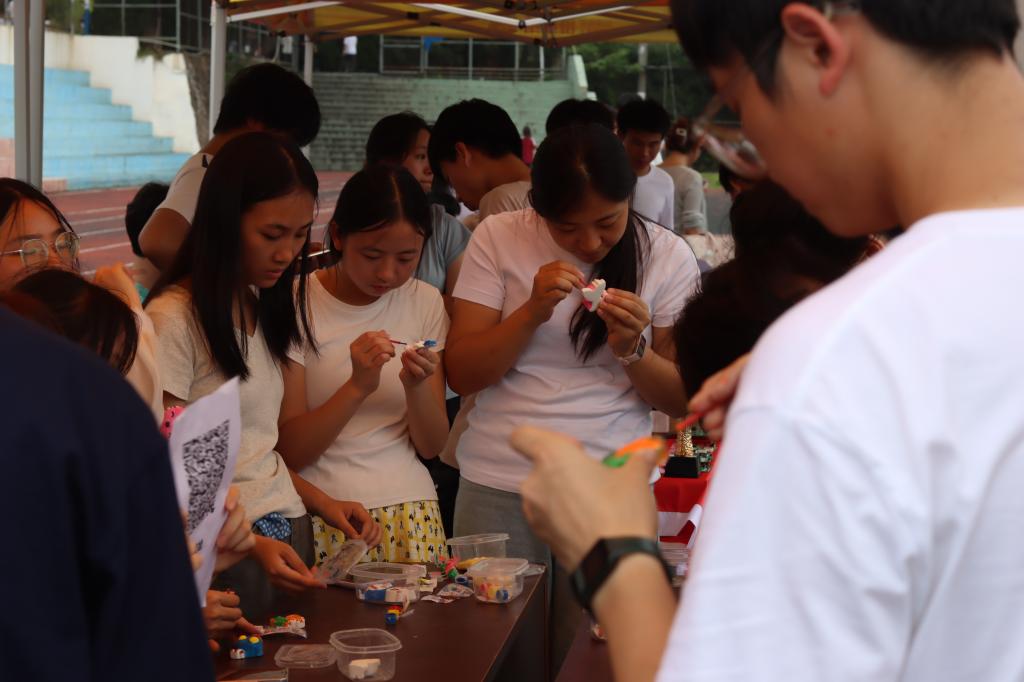 活动现场,各个社团根据安排布置好了社团展示点,同时也根据自身社团特色,在展示点摆设抢椅子、投壶、套圈、香包手链、石膏娃娃的制作等11个趣味摊点,让同学以“参与者”“创作者”“传播者”的沉浸在此次盛会之中,感受社团与传统文化碰撞的魅力。