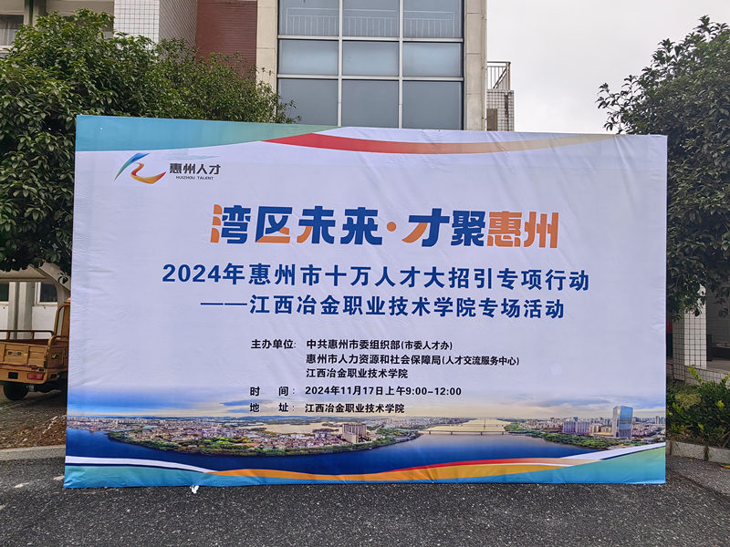 2024年11月17日,惠州市人社局组织惠州企业来我校参加惠州市2024年“金蓝领”技能人才引进秋季校园推介招聘活动,学校党委副书记、院长潘山、招生就业处处长张春芽、就业干事和全校300余名毕业生参加。