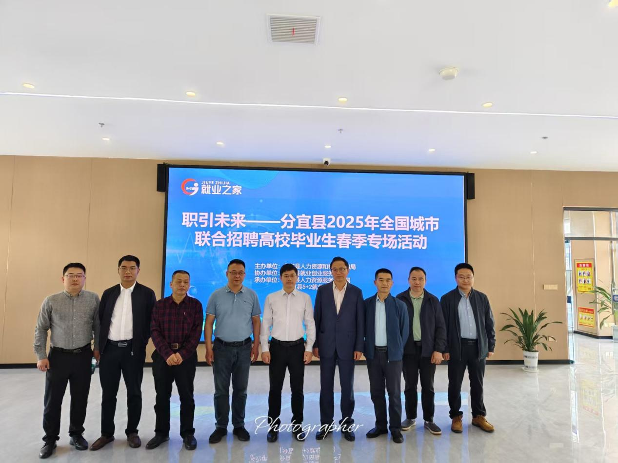 2025年4月25日上午,分宜县人力资源和社会保障局、分宜就创中心、分宜工业园区共同邀请新余高校5所高校参加“职引未来—分宜县2025年全国城市联合招聘高校毕业生春季专场活动”;我校与分宜工业园区是“1+1+N”结对服务企业用工、毕业生就业的主体。此次活动,我校招生就业处汇同冶金工程学院、电气工程学院、制造工程学院相关领导及就业干事参加。