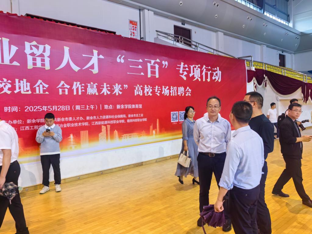 我校一直秉承服务地方经济、服务地方企业发展的办学理念,近些年来,更多的毕业生选择属地优质企业就业,为了与企业联系的更加紧密,拓宽更多的岗位;2025年5月28日,学校校长潘山一行来到新余学院参加新余市促就业留人才“三百”专项行动—“牵手校地企 合作赢未来”高校专场招聘会。