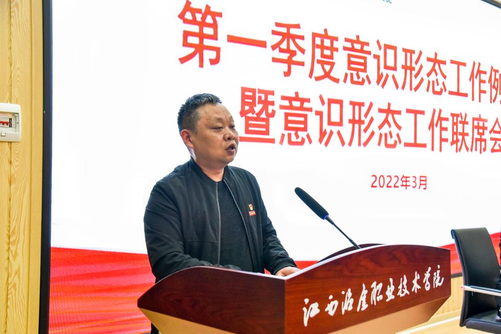 3月11日上午,学校意识形态工作联席会暨第一季度工作例会在新二实训楼思政大讲堂召开,学院党委委员、副院长潘山出席会议,党委委员、党委宣传部部长孙毅,各党支部书记、各部门负责人参加会议,会议由孙毅主持。