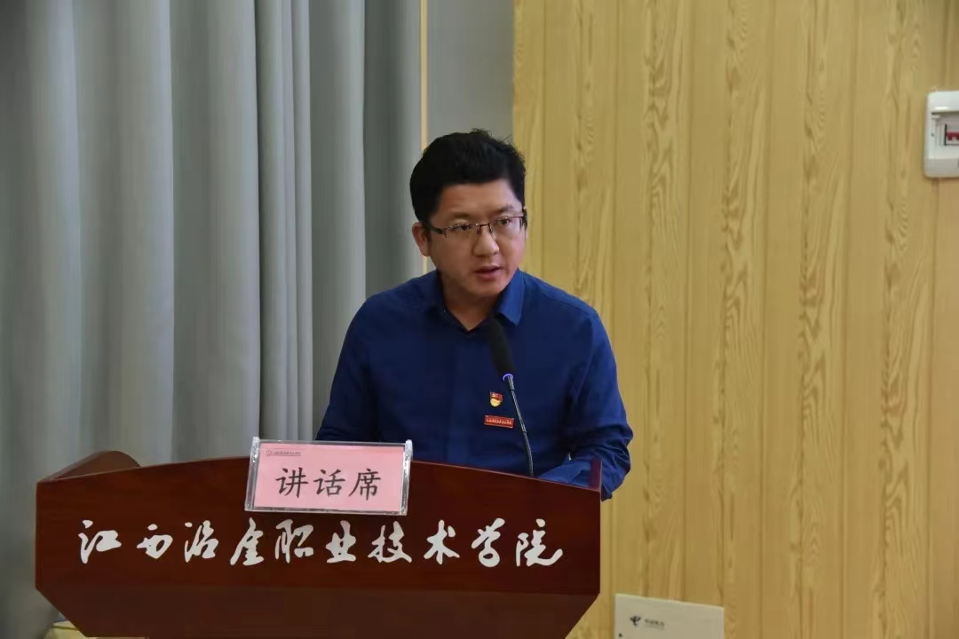 团委副书记涂斌汇报团委工作开展情况,并向全体青年教师发出倡议:加强学习,勇于担当,热心公益,争当职教先锋。