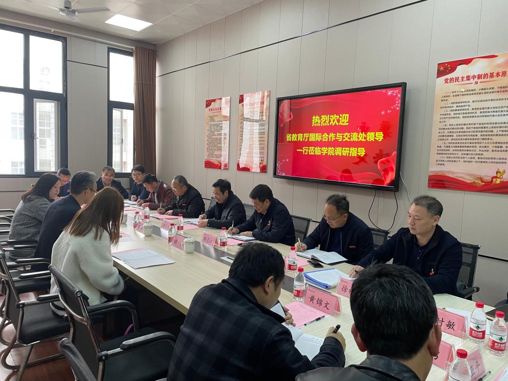 3月3日上午,省教育厅国际合作与交流处调研组来我校,调研考察学校与马方合作,开班马来西亚国际班,招收外国留学生相关工作和资质,指导工作。调研组由处长雷杰华等一行3人组成。学校党委书记杨乐文、院长郭志江、副院长彭全、副院长潘山在学校党委会议室接待了雷杰华一行,并召开了专题汇报会。相关部门负责人一同参加了会议。