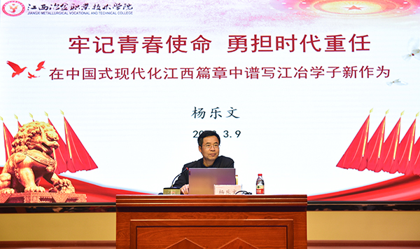 讲课最后,杨乐文勉励同学们要牢记党的二十大报告中习近平总书记对广大青年的殷切嘱托,希望同学们在中国式现代化江西篇章中谱写江冶学子新作为!