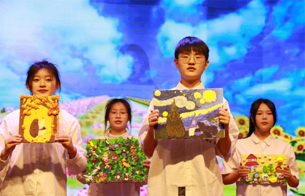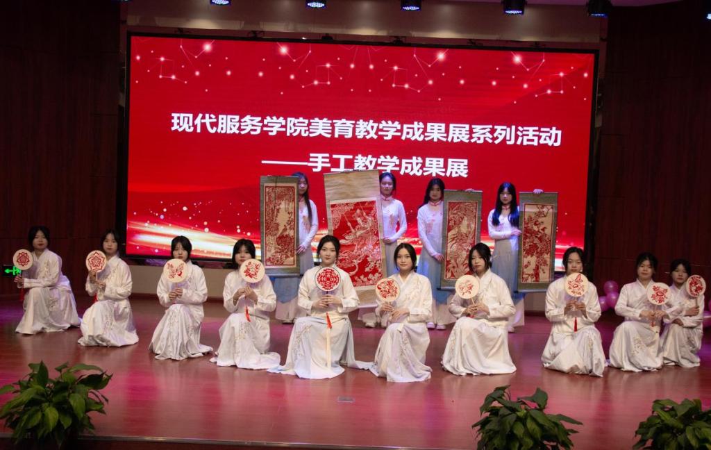 此次美育教学成果展以丰富学生校园生活,培养学生健康的审美情趣和良好的艺术修养为目标,展示学生的专业技能和职业素养,学生的覆盖面广、参与性强。作品结合专业亮点和特色,推动专业与教学、专业与社会、专业与文化创意有效融合。各个专业班级以小组为单位,依托手工制作课程,分别从剪纸、刺绣、花艺、纸浮雕、纸浆画等11个特色工艺着手,运用舞蹈、舞台剧、走秀、小品等多种形式,完美展现手工作品的别样韵味;晚会穿插的“专业知识答题赢手工小奖品”环节更是将活动推向了高潮,将专业知识融入到实践活动中,充分调动了学生学习专业技能的积极性。