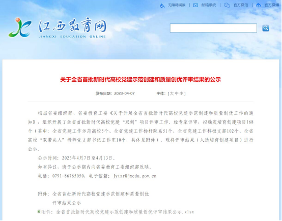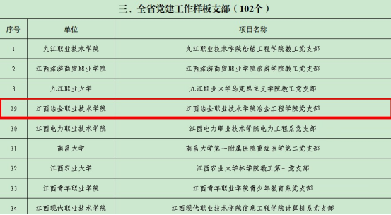 近日,中共江西省委教育工委公布了首批全省新时代高校党建示范创建和质量创优(简称“双创”)工作创建单位名单, 我校冶金工程学院党支部获批全省高校党建“样板支部”创建单位。
