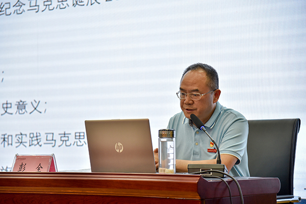 彭全指出:学深悟透马克思主义一要学习和实践马克思主义的9个方面。学习马克思,就是要学习和实践马克思主义关于人类社会发展规律、坚守人民立场、生产力和生产关系、人民民主、文化建设、社会建设、人与自然关系、世界历史、马克思主义政党建设的思想。二要认识马克思和马克思主义。马克思主义是实践的理论,指引着人民改造世界的行动。在学习和实践马克思主义中要知道人民性是马克思主义最鲜明的品格,为绝大多数人谋利益、坚持人民利益至上,彰显了马克思主义政党的根本价值立场和价值取向。三要以史为鉴知兴衰。对比中国明清时期和国外的发展可以得出历史发展经验,在世界百年未有之大变局背景下,构建人类命运共同体重大理念,深刻回答了世界向何处去、人类该怎么办的重大命题,在历史转折关头彰显出璀璨的真理光芒,指引着中国前进的正确方向。四要重温宣言,开创未来。重温宣言,对于我们更好坚持和发展马克思主义,进一步用科学理论武装头脑提供了根本遵循。我们要学习和实践马克思主义,不断从中汲取科学智慧和理论力量。