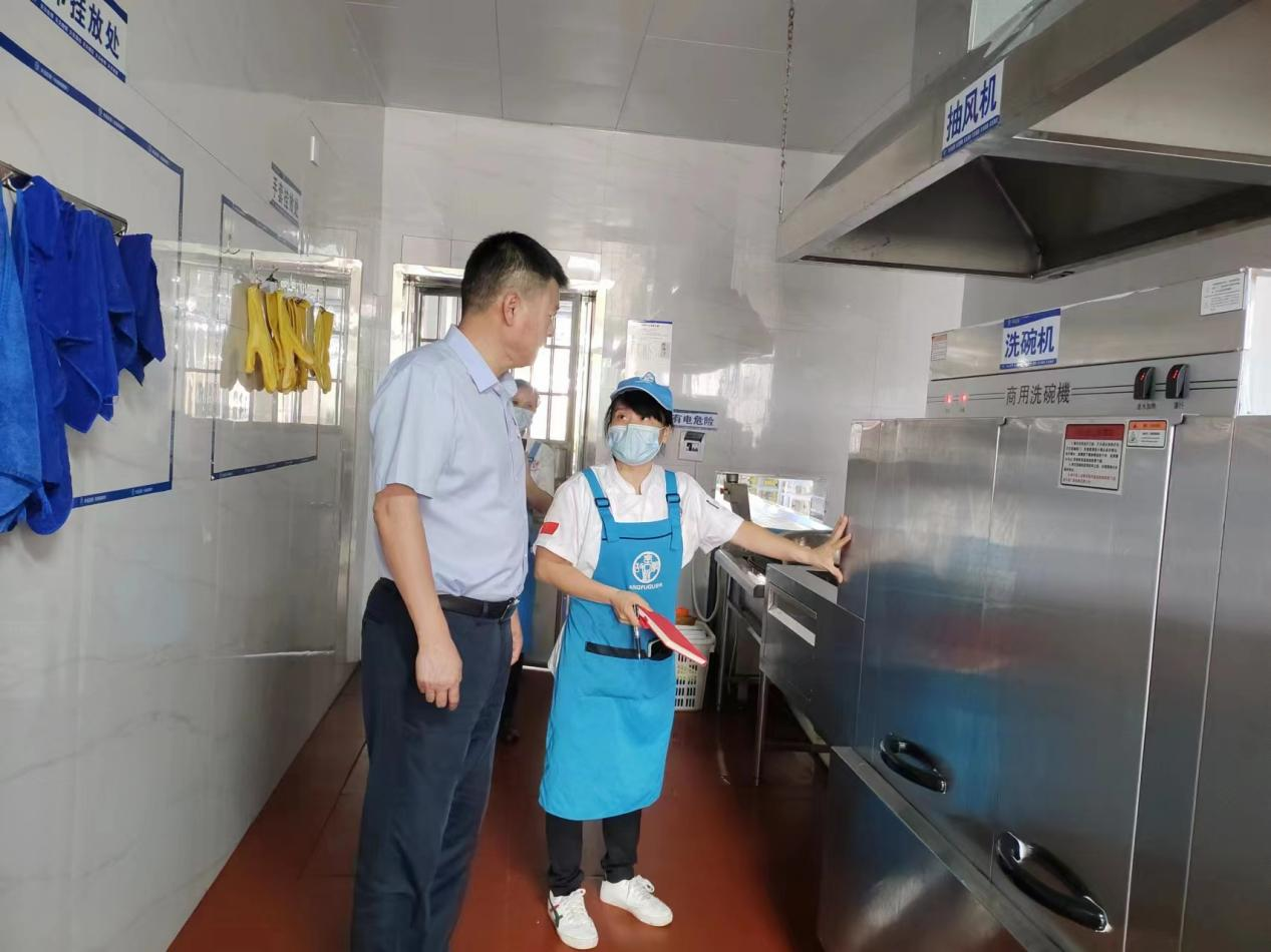 走进餐厅,郭志江仔细查看了环境卫生与饭菜供应情况,随后了解后厨的现场操作、食品加工、仓库储存、消防器材使用等情况,重点检查了食堂员工每日健康登记、食品留样、场所消毒记录以及为保障就餐安全所采取的各项防控措施。