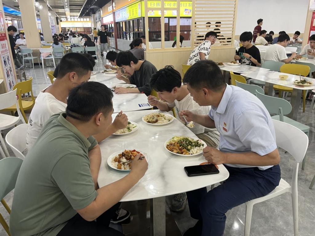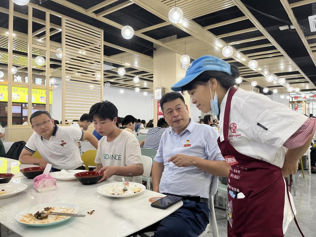 在就餐过程中,郭志江与学生亲切交谈。“平常在哪个食堂吃的比较多呀?”“你们觉得食堂菜品种类丰富吗?”“对食堂就餐情况有什么意见建议?”在得到学生明确回答后,郭志江当即联系食堂负责人,要求对学生反馈情况要高度重视,并加以有效改进。同时,郭志江告诉一同就餐的学生,为了加强食品安全,构建食品安全保障体系,学校已经启动了三级陪餐制度。如果发现有服务态度恶劣、菜品不卫生等现象,学校将勒令整改;对于整改不到位的窗口将要求限期整顿。
