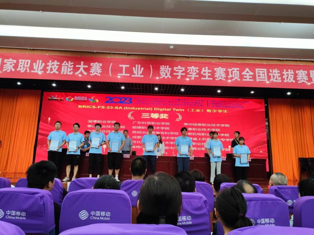 7月3日,2023年金砖国家职业技能大赛(工业)数字孪生赛项全国选拔赛暨国内决赛在安徽职业技术学院举行,本次大赛共有来自全国23个省(自治区、直辖市)的124名选手报名参赛。我校参赛选手获得三等奖。