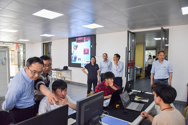 省厅领导参观了学校的黄贤振大师工作室、黄辉大师工作室、综合育人体验中心,在校园内现场了解了校园发展建设规划,查看了学生宿舍整体环境。