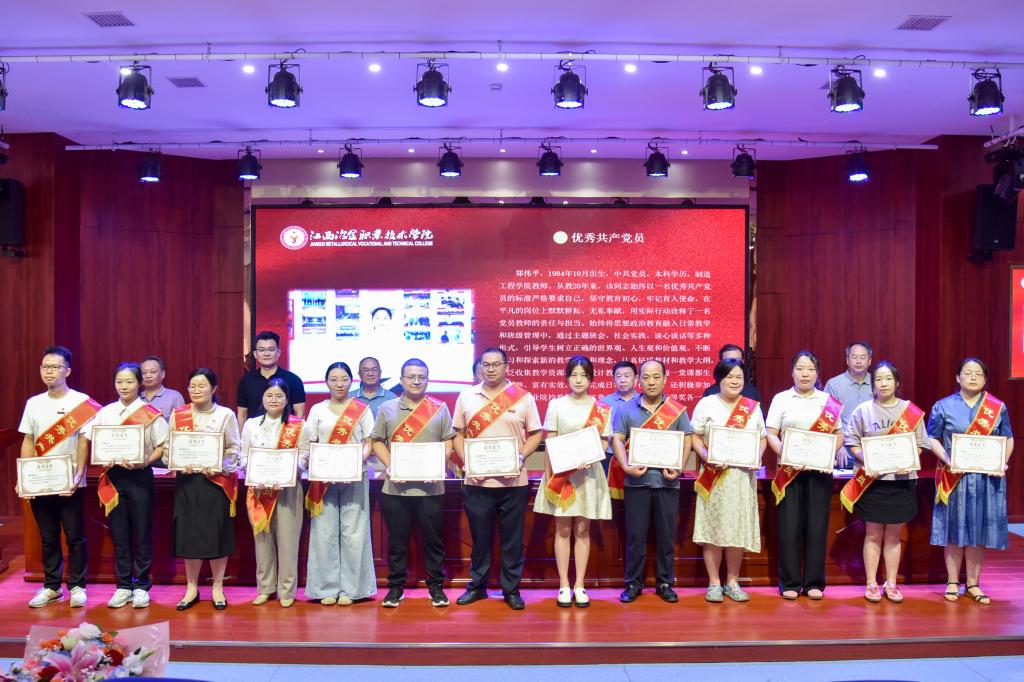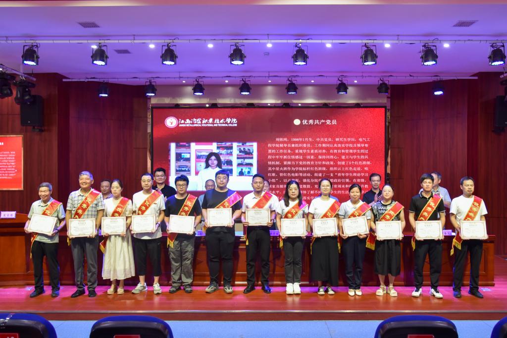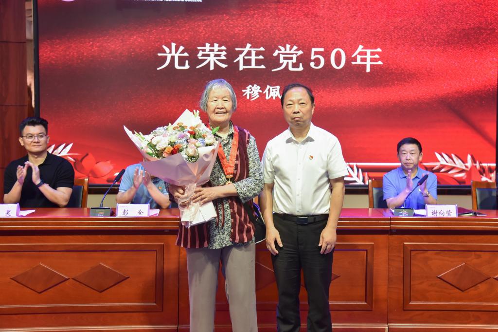 党委委员、副院长彭全宣读了学校党委关于表彰2025年优秀共产党员、优秀党务工作者和先进基层党组织的决定。大会依次为“光荣在党50年”老党员颁发纪念章和荣誉证书,献上鲜花。为2个先进基层党组织、8名优秀党务工作者、41名优秀共产党员和14名党风廉政建设先进个人颁发荣誉证书。