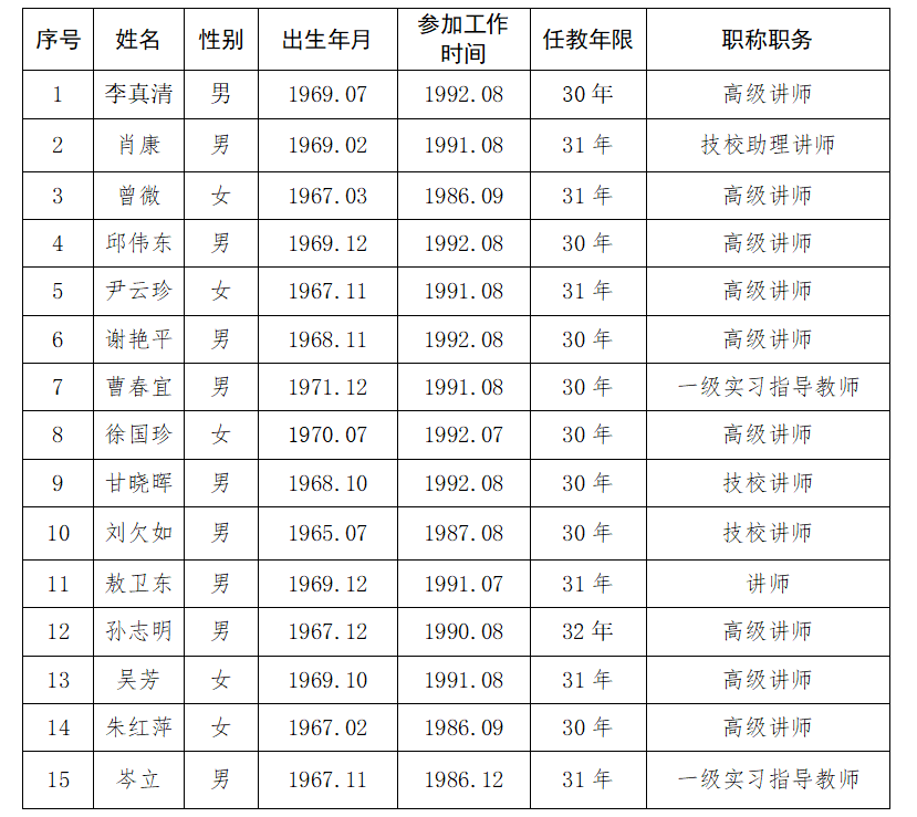 根据江西省教育厅办公室下发的《赣教师办函〔2022〕8号关于做好2022年度长期从教教师荣誉证书颁发工作的通知》要求,经个人申报,人事处审核,学院党委会审议同意,下列同志符合申报条件,拟上报江西省教育厅。现公示如下: