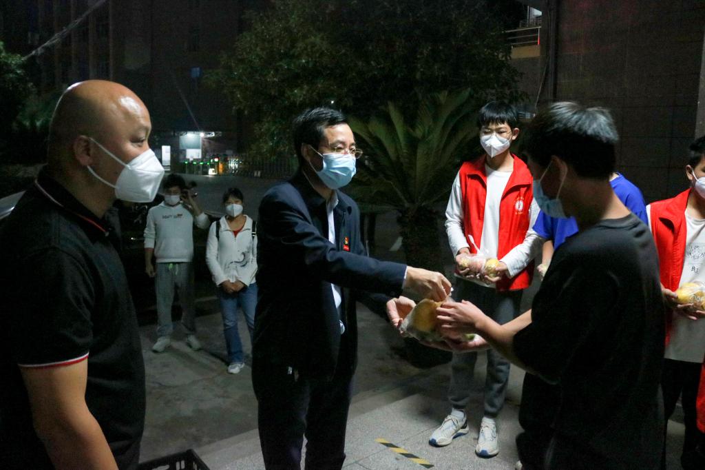 一线慰问——图片故事:学校党委领导班子走访慰问坚守一线的党员干部教师和学生志愿者,并为他们送上慰问品。
