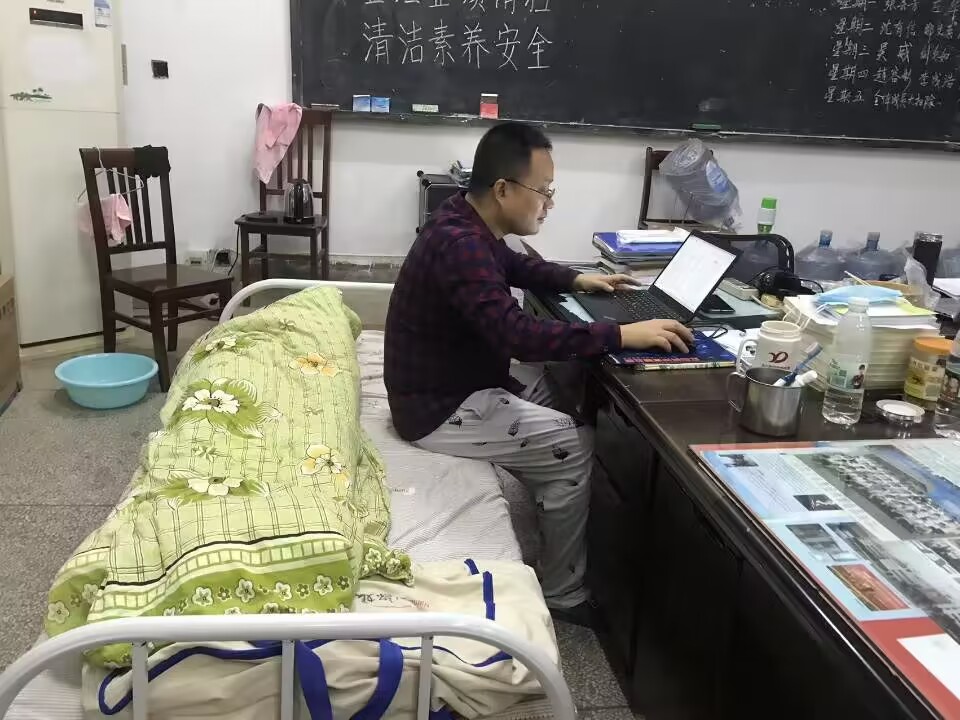 就地睡眠——图片故事:由于静态管理事发突然,许多工作人员没有床铺,他们因陋就简,有的在车内过夜,有的用几张办公桌拼成一张“床”,有的就地打地铺,就是在这样的休息条件下,他们第二天仍然丝毫不懈怠自己的工作。
