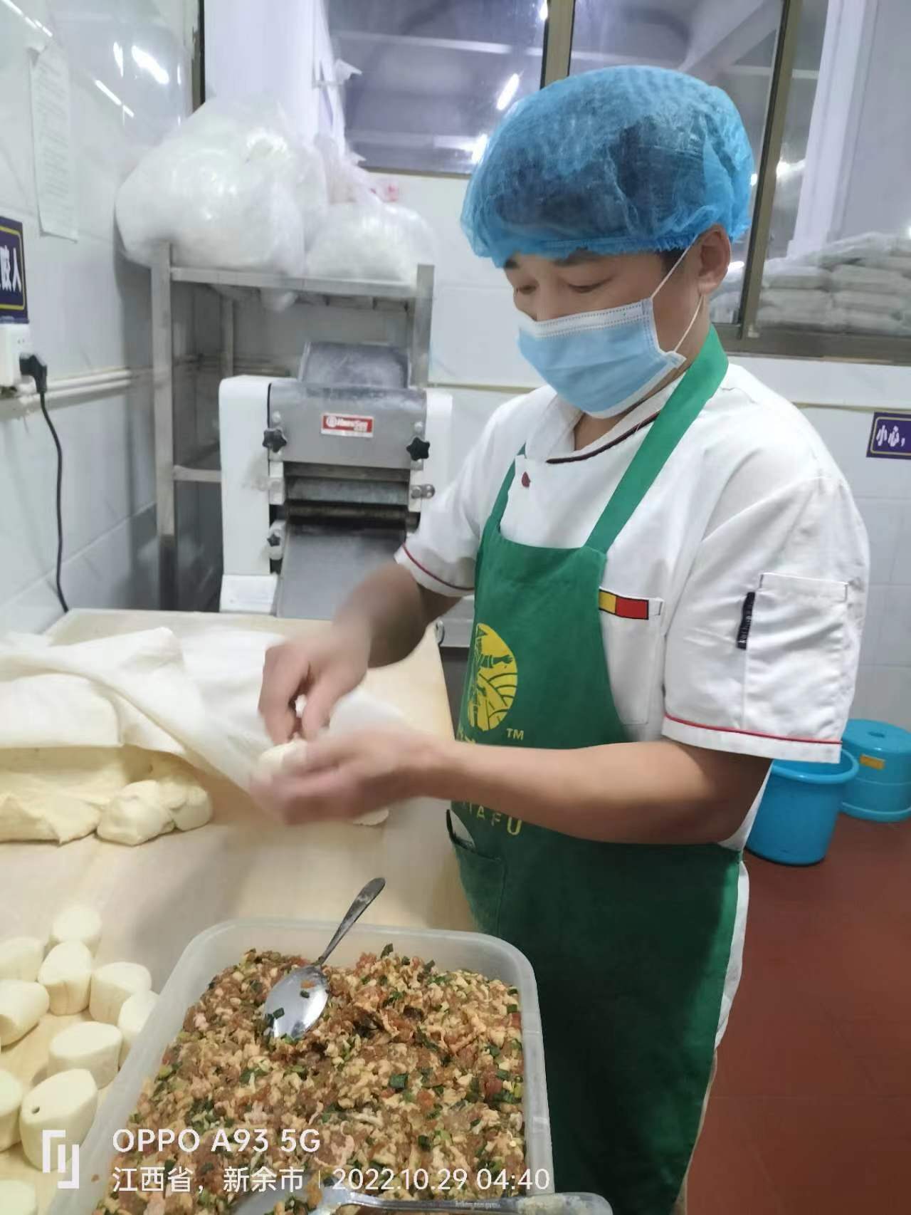 准备早餐——图片故事:为了满足14000余名师生的需求,食堂工作人员在凌晨4点就起床,制作花色品种多样的早餐。