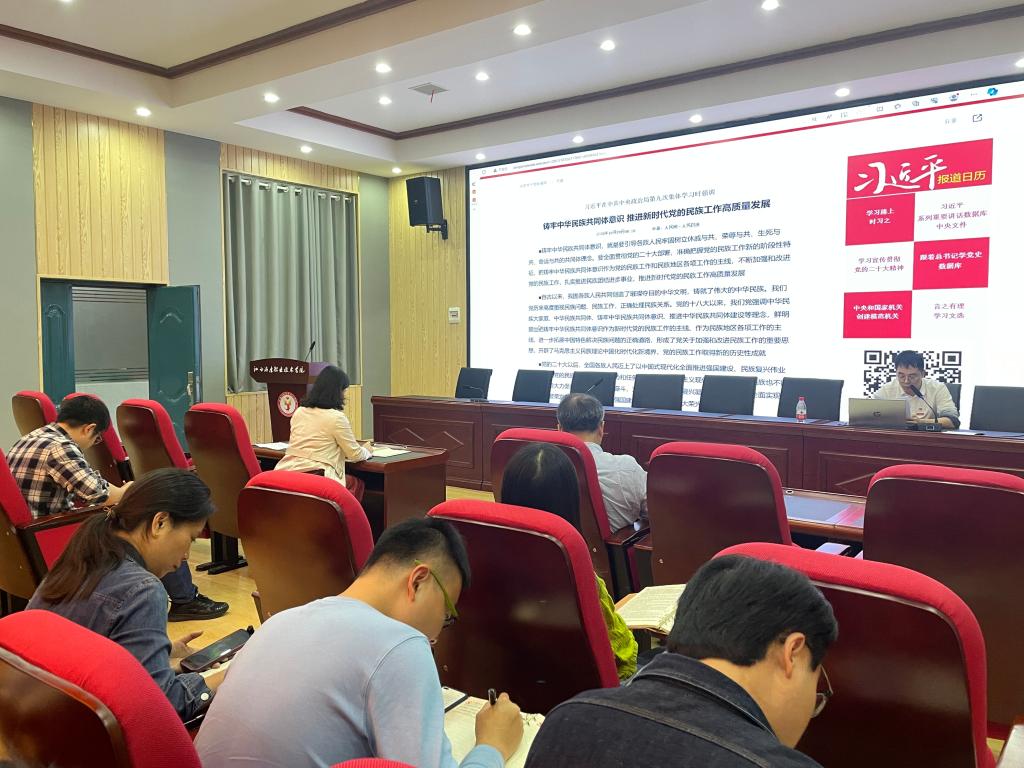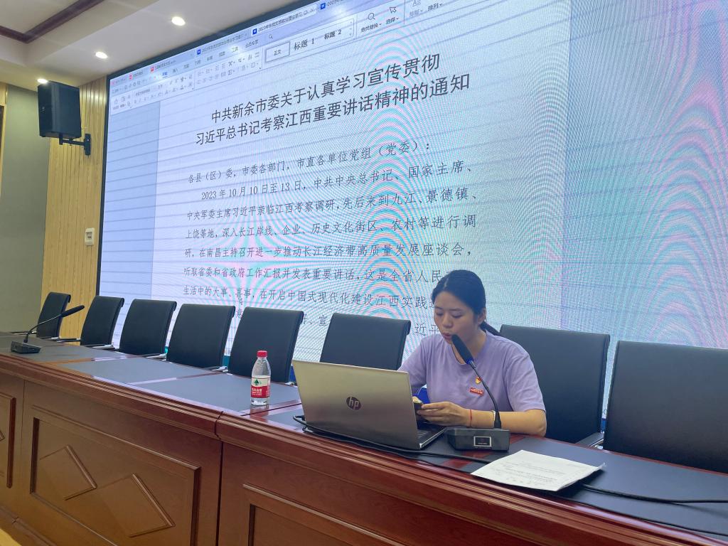 会上,支部党员廖薇、王一凡、聂开怀、张嘉程分别领学《习近平在江西考察时强调 解放思想开拓进取扬长补短固本兴新——奋力谱写中国式现代化江西篇章》、《习近平总书记和江西的故事》、《铸牢中华民族共同体意识 推进新时代党的民族工作高质量发展》、《省委书记尹弘同志在全省领导干部会议上的讲话》、《新余市委书记郑光泉同志在全市领导干部会议上的讲话》等重要内容。