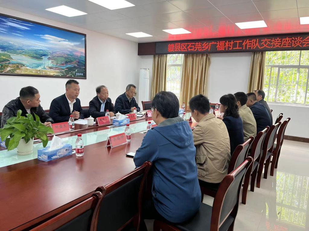 赣县区政府召开座谈会,欢迎驻村干部的到来。区政协副主席孙美萍主持工作队交接座谈会,石芫乡党委副书记、乡长钟鑫介绍乡情,广福村党支部书记、村委会主任赖后元详细介绍了村里产业发展、人居环境整治、民生保障等工作进展。