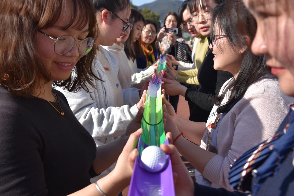 趣味运动会中,女教职工们喜笑颜开,热情而活跃地投入到“同心击鼓”、“珠行万里”、“不倒森林”、“环环相扣”等趣味活动中,充分展现出了积极向上、美丽健康的精神风貌,收获了健康和快乐。