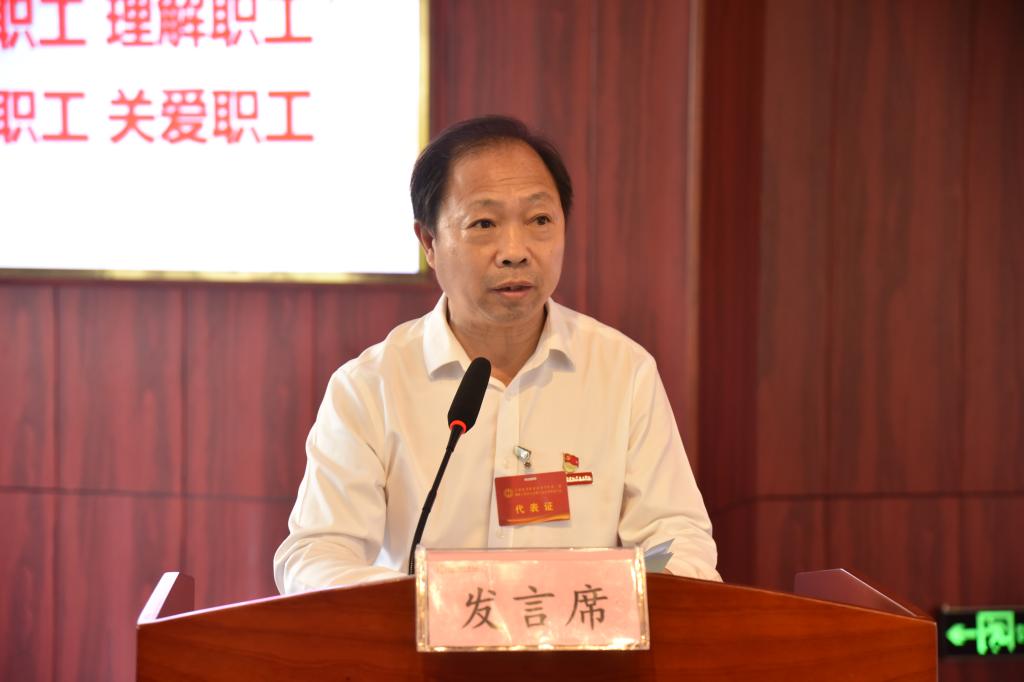 最后,杨乐文发表讲话。他指出,本次大会是一次聚焦目标、统一思想、深化认识、拓展思路的大会,也是一次蓄势奋进、满怀豪情再出发的大会,希望各位代表能够一如既往发挥党组织联系广大教职工的桥梁和纽带作用,不断增强学校发展的向心力和凝聚力,为实现学校创建省“双高”目标做出应有的贡献。杨乐文表示,2022年是新时代新征程中具有特殊重要意义的一年,迎接学习宣传贯彻党的二十大精神,是学校开展各项工作不可丝毫偏离的主线。我们要坚持理论强基,忠诚铸魂;要坚持围绕中心,胸怀大我;要坚持创新实干,攻坚克难;要坚持参政议政,服务师生。要从学校的大局出发,围绕学校中心工作,共议学校发展大计,共商办学治校良策,真正体现热爱学校、发展学校、风雨同舟的主人翁精神。对于如何干好工作,杨乐文提出了三点建议:一是把工作当“分内事”做;二是把工作当“自家事”做;三是把工作当“一件作品”去做。他强调,事业是干出来的,所以我们心要齐、情要专、力要够,将工作作为“分内事”、“家中事”、“好作品”来精雕细琢,充分发扬劳模工匠精神,为实现学校创建省“双高”目标做出应有的贡献!