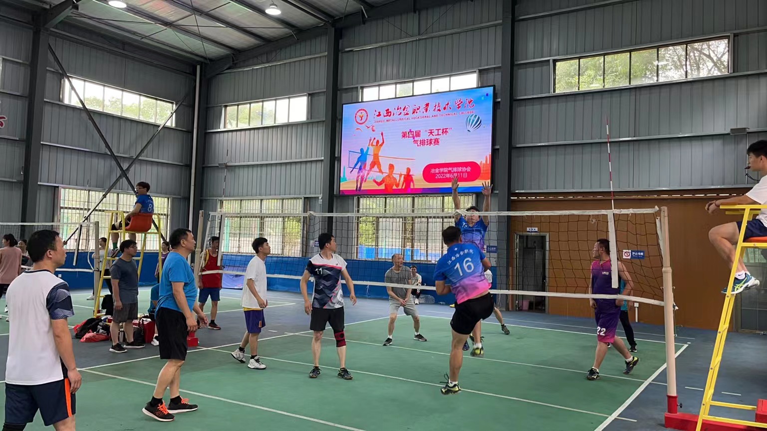 2022年6月11日上午,学院工会气排球协会在学院香樟球馆组织开展了第四届“天工杯”气排球比赛,协会40余名成员参加了比赛。本次比赛男女各4支队伍进行循环比赛,总共12场。8:30分,随着主裁判邱伟东一声哨响,学校党委副书记、工会主席李茂旺为比赛开球,比赛正式开始。