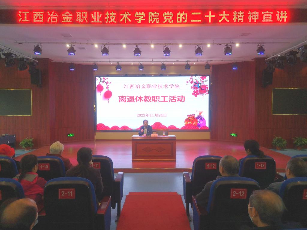 11月24日上午,为庆祝党的二十大胜利召开,学校工会组织离退休教职工开展学习活动。活动分两部分:学习党的二十大精神;观看红色电影《我和我的祖国》。70余名离退休教职工参加了活动。