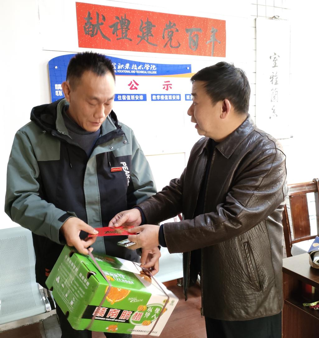 声声问候送真情,浓浓关怀暖人心。春节前夕,学校开展新春慰问活动。学校领导杨乐文、潘山、李茂旺、谢向莹、彭全分别到各分会走访慰问困难教师代表,为他们送上新春的问候和祝福。