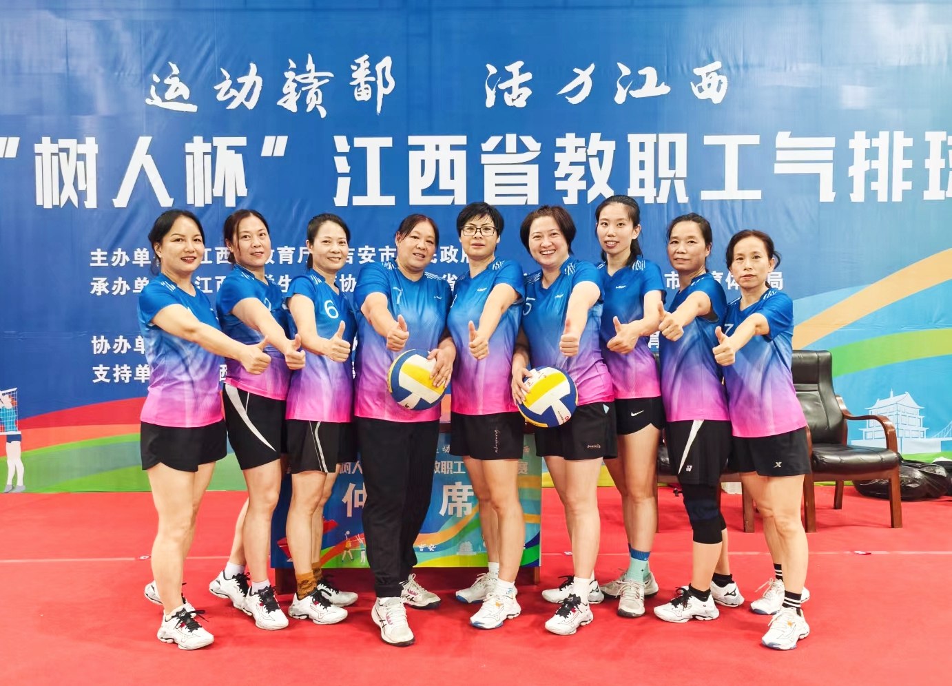 10月24日,备受瞩目的第一届“树人杯”江西省教职工气排球比赛在吉安市泰和县体育中心圆满落幕。我校代表队在激烈的比赛中表现出色,取得了令人瞩目的成绩,女队荣获专科组第一名,男队获专科组第四名。