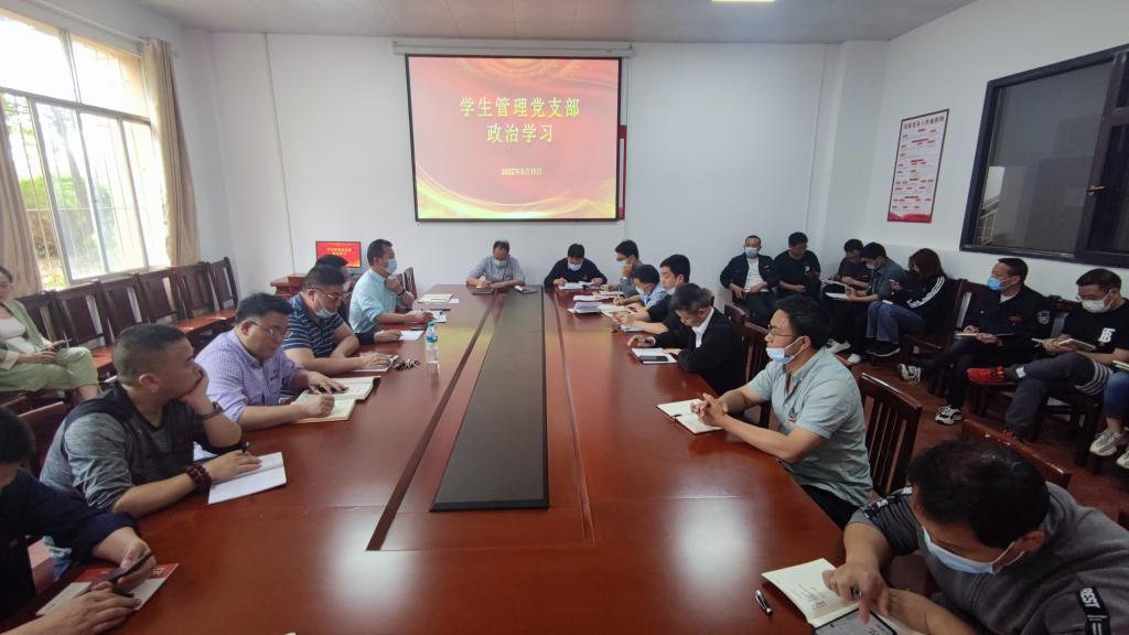 2022年5月11日,在学生管理党支部党员活动室,学生管理党支部开展教育思想大讨论,会议由党支部书记邓灵波主持,挂点支部院领导潘山出席,全体教职工参加。