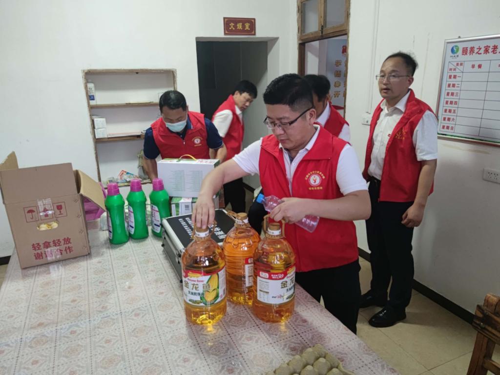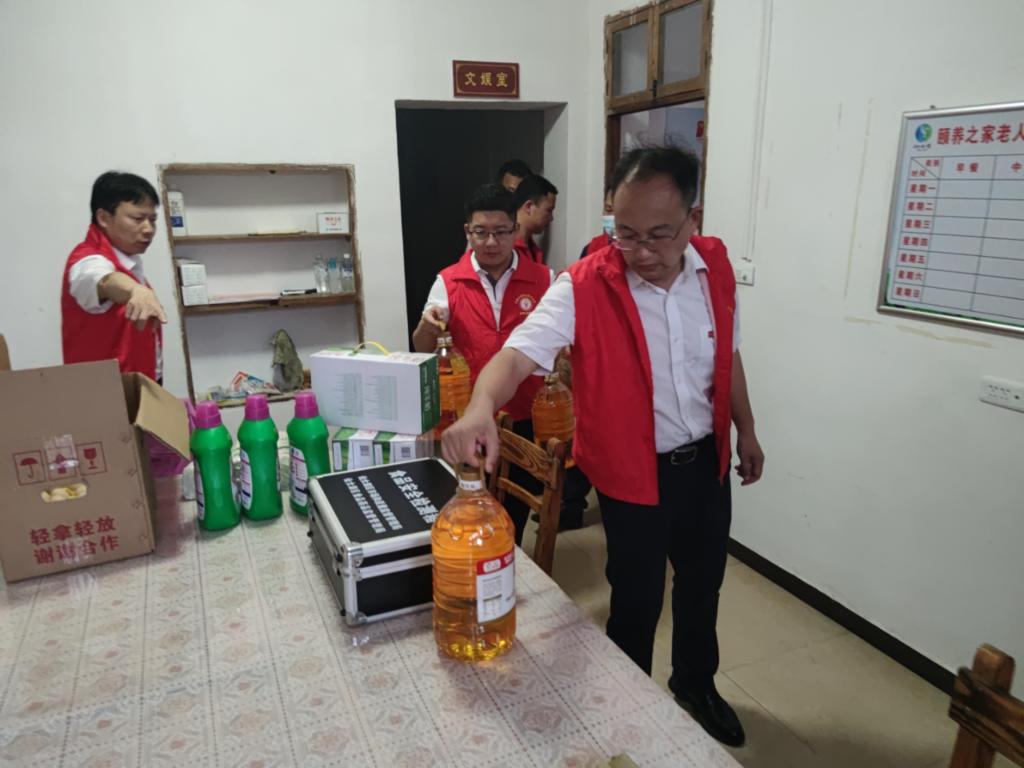 6月1日下午,学生管理党支部全体党员、入党积极分子前往结对帮扶村仙女湖区河下镇龙伏村,在端午节来临之际,为村内“颐养之家”的24名老人带来节日问候以及慰问品。