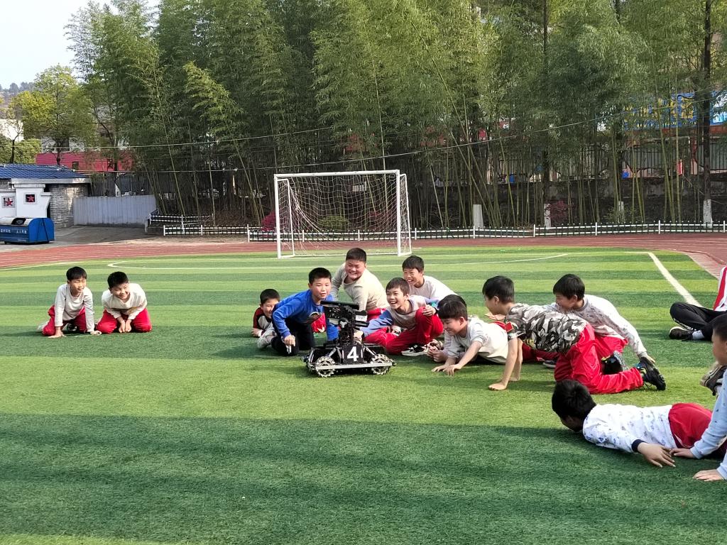 制造工程学院智能装备工作室带着他们的机器人,来到九龙山乡中心小学。工作室成员向小学生们现场展示了“黑色魅影”机器人,并简单地介绍了它的基础结构、驱动系统、主要性能和具体用途。他们通过控制手柄来操纵机器人进行灵活运动,面对同学们提出的问题一一解答,引得在场同学们欢呼雀跃。随后,针对部分想尝试操作的同学,工作室成员手把手指导他们如何操作,并引导他们面对自己感兴趣的事物需要加强学习,争取未来能在机器人研究领域成为一个专家。