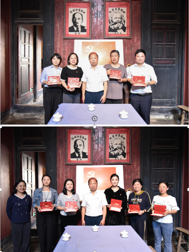 在二七会议旧址,全体党员面向党旗重温入党誓词,向党旗宣誓,共同追寻共产党人的初心和使命。