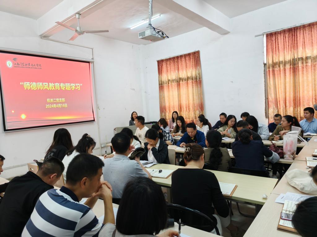 为进一步加强支部教师职业道德建设,4月16日下午,机关二支部在双创中心会议室开展“弘扬践行教育家精神”师德师风集体宣誓承诺活动。