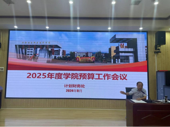 2024年9月30日上午,学校在思政大讲堂组织召开了2025年度预算工作会。会议由党委副书记李茂旺主持,党委副书记、院长潘山,副院长彭全出席会议,各部门、分院负责人参加了会议。