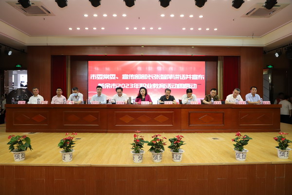 5月18日,新余市2023年职业教育活动周启动仪式在赣西科技职业学院举行。新余市委常委、宣传部部长张智萍出席仪式并讲话。学院院长郭志江代表学校受邀参加,职教美育展示项目和竞赛获奖师生代表一同参加了启动仪式。活动由新余市政府副秘书长许春忠主持。