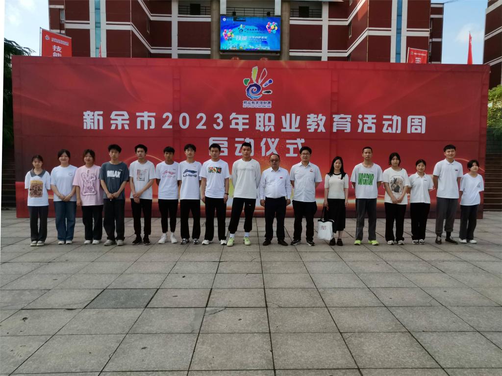 在仪式上,新余市教育局党委书记、局长曾先锋宣读新余市职业院校师生参加2022年全国、全省技能大赛等赛项的获奖名单,参会领导为获奖者代表颁奖。学院共有国赛获奖5项、省赛获奖3项和教学能力比赛获奖6项受到表彰。最后,张智萍、许春忠、曾先锋共同按下启动球,宣布新余市2023年职业教育活动周正式启动。