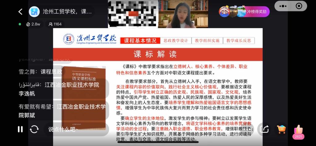 本次线上培训,由沧州工贸学校的张莉丽教授和骨干教师刘晓宁授课,为大家分享开展课程思政的方式、路径和经验,就如何打造课程思政教育案例提出建议。