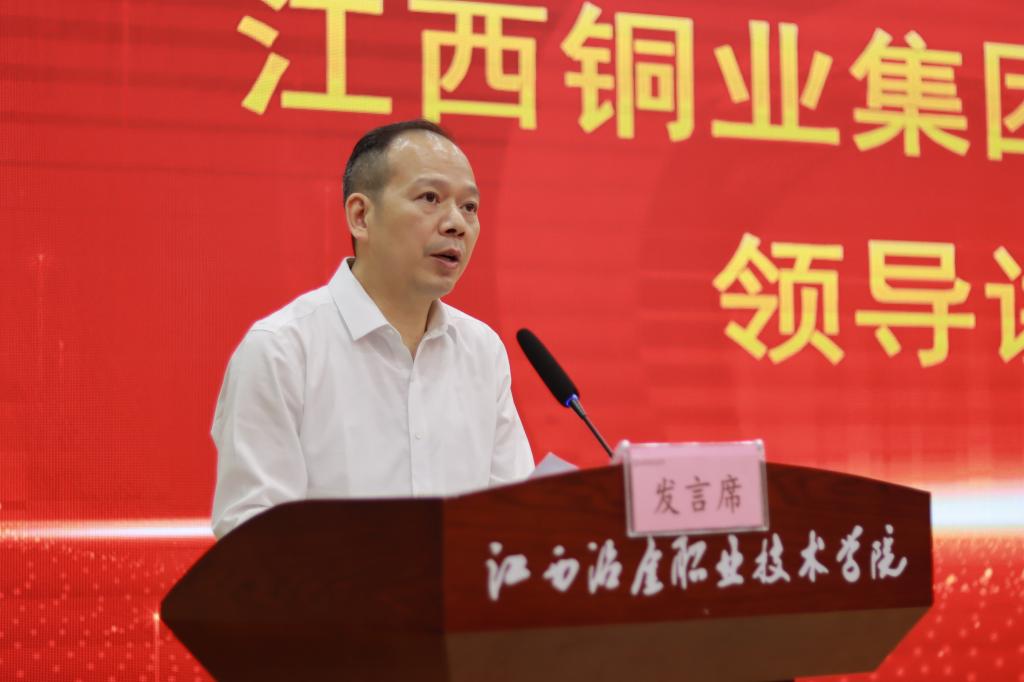 接着,卢章师讲话。他表示,此次签约是深入贯彻落实“走在前、勇争先、善作为”的目标要求,是努力构建体现江西特色和优势的现代化产业体系的具体行动,是积极响应省委省政府“1269”行动计划的重要举措。江铜集团对此次校企共建现代学徒制班充满期待和信心,与江西冶金职院签订现代学徒制人才培养协议恰逢其时,非常有意义。卢章师充分肯定了学校的办学成果,他指出,校企共同推行现代学徒制有利于促进学校人才培养对接企业用工需求、有利于充分发挥校企双方优势、有利于积极为企业培养高素质技术技能人才、有利于助推行业和企业高质量发展。