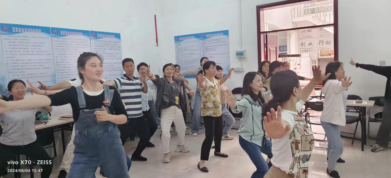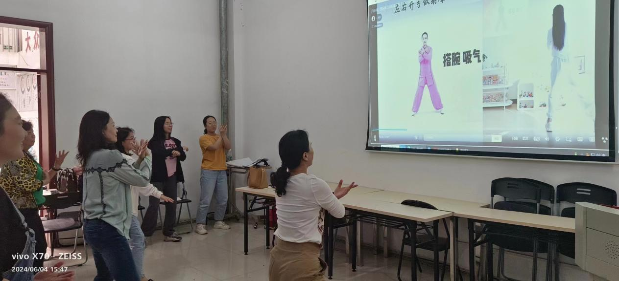 为丰富教职工活动,6月4日,机关二分会开展了以“健康生活、快乐工作”为主题的大家一起学八段锦趣味活动。