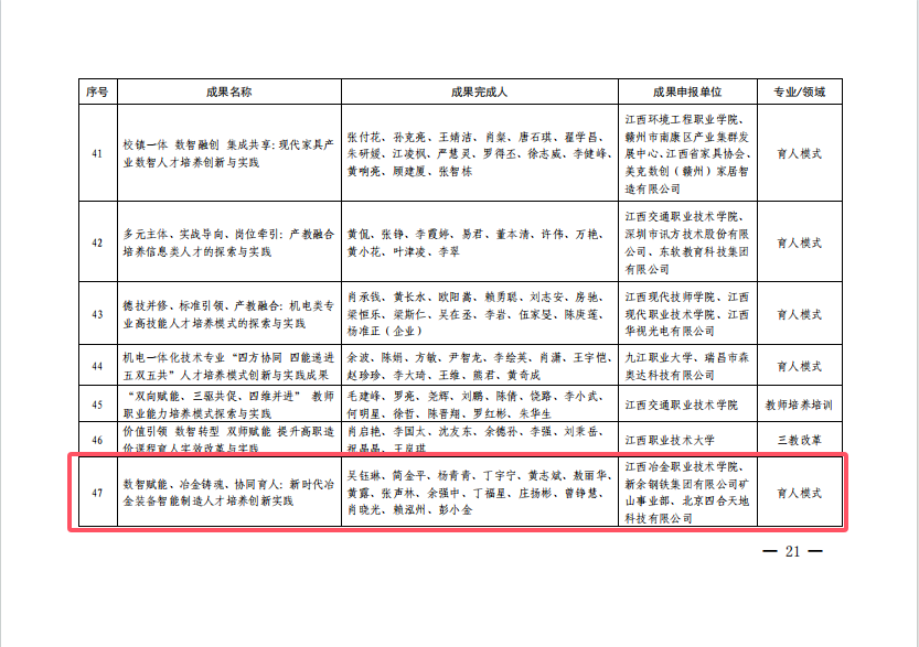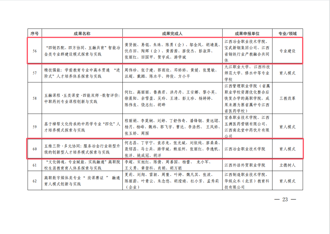 教学成果奖是学校办学治校的标志性成果,省级、国家级教学成果奖每四年评选一次,省级教学成果奖青年培育项目每两年评选一次。按照江西省教学成果奖青年培育项目管理办法(试行)要求,作为省教学成果奖培育项目,在下一届次的省教学成果奖申报中,主要完成人不超过47周岁的项目,将全部从省教学成果奖青年项目中择优推荐。