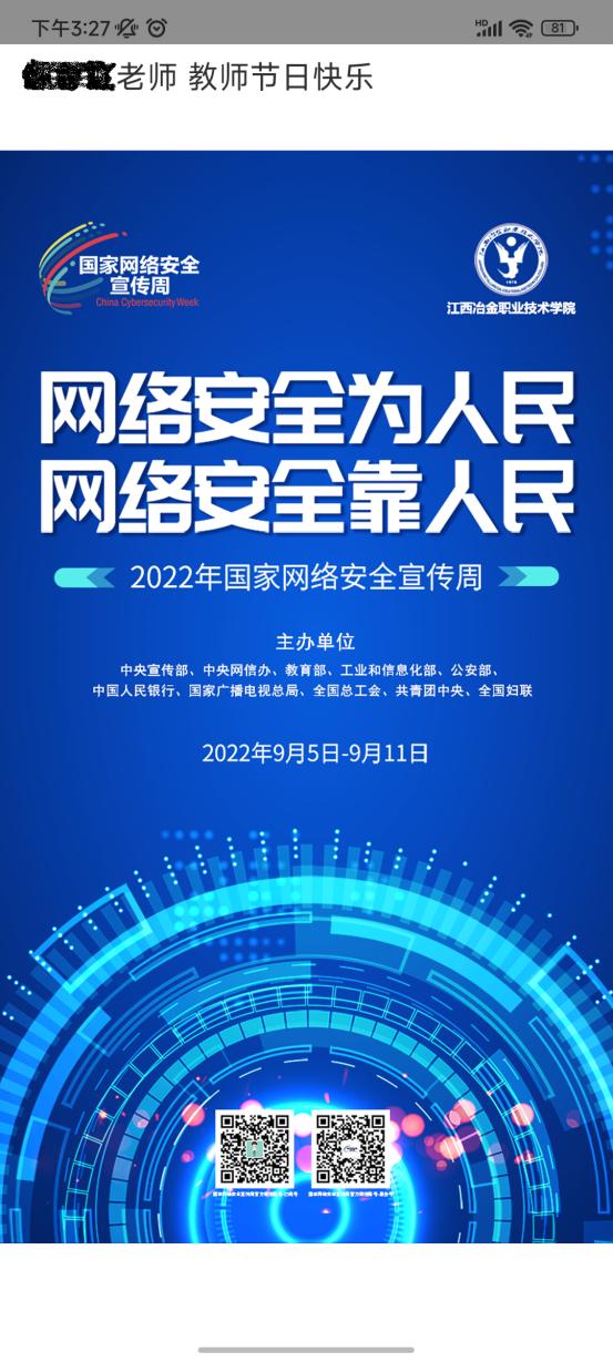 学院组织学生参加了网络安全知识线上答题活动。活动期间,全体师生参与了省工信厅和省委网信办组织的“2022江西省网络安全知识竞赛”活动。