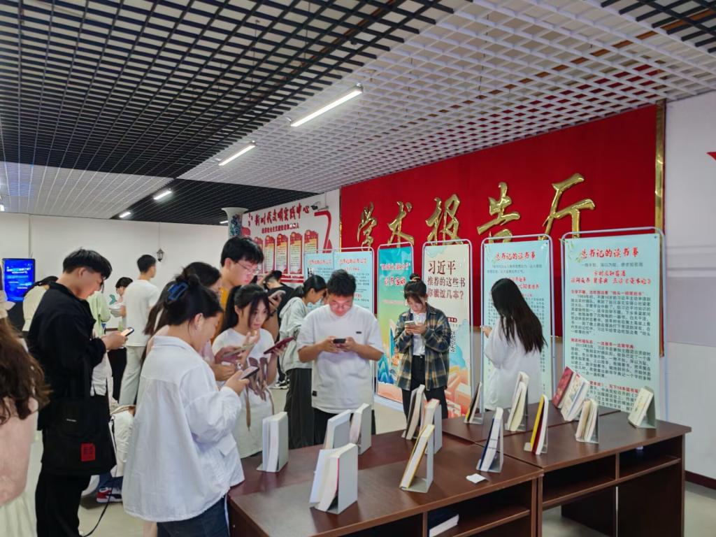 活动现场展出了习近平总书记推荐书单中的部分书籍。同学们纷纷捧起一本本经典图书,津津有味地阅读着,感受经典名著带来的心灵滋养与启迪。