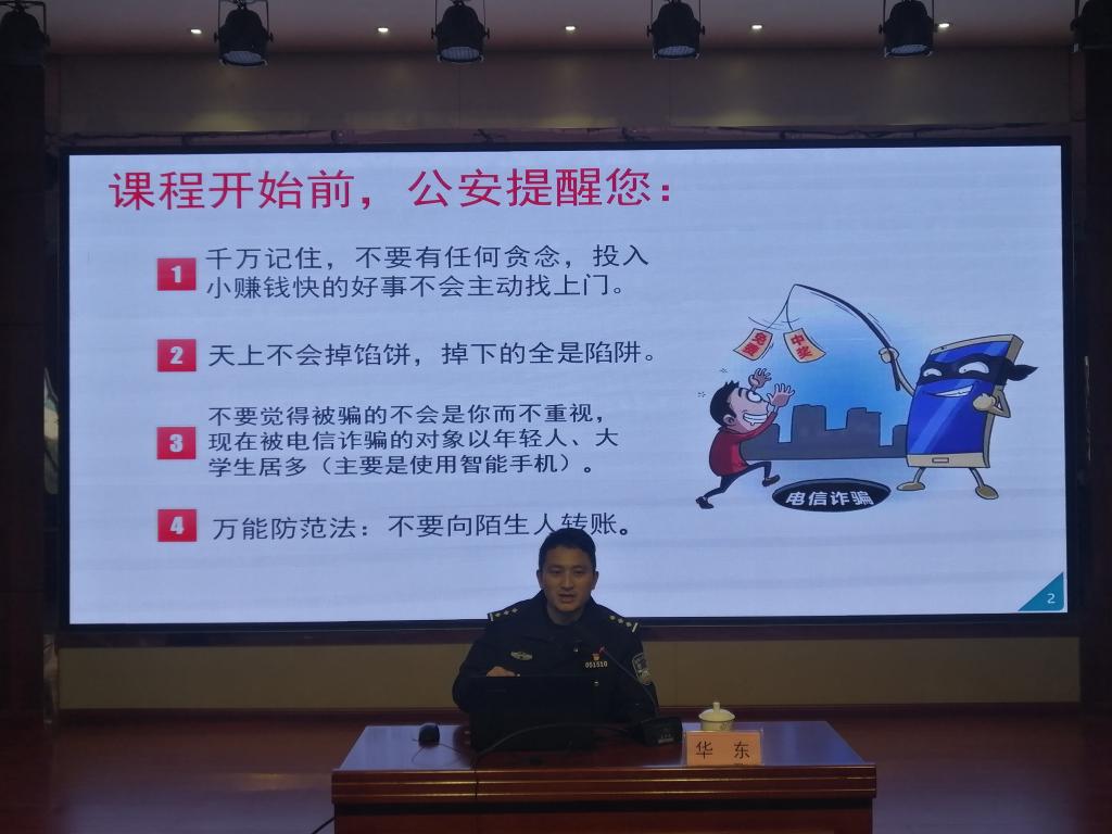 2月21日下午,学院在报告大厅举办了平安建设培训暨严厉打击防范电信网络诈骗预防青少年违法犯罪专题讲座。平安办与学工处特邀新余市仙女湖区公安分局河下镇派出所所长华东主讲,各学院党总支(支部)书记及全体班主任、辅导员参加,讲座由平安办副主任黄平文主持。