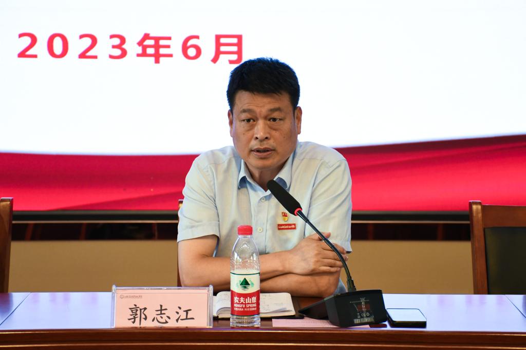 郭志江讲话。他对学院平安建设工作提出具体要求:一是重点在思想引领,要用正确的世界观、人生观、价值观引领师生。二是关键在及时发现,要以时时放心不下和不放过任何线索的责任感抓好校园安全工作。三是工作上要警钟长鸣,要不厌其烦,创新方法,提高效率让安全意识入脑入心。四是基础在依规办事,违规是追责之源,敬畏规矩,保持谨慎,强化安全意识。