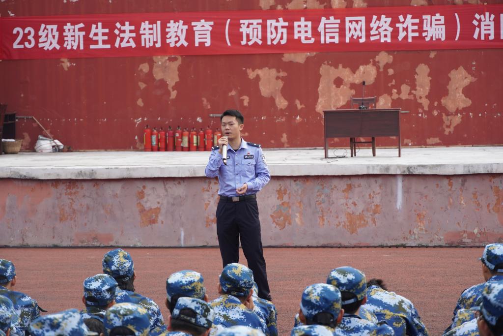 10月13日,学校与仙女湖区公安分局及河下镇派出所合作,在田径场共同举办“2023级新生法制教育(预防电信网络诈骗)进军训”主题宣讲活动。仙女湖公安分局党委委员、副局长黄四皮,河下镇派出所所长梁俊出席,校党委委员、副院长潘山出席活动,学工处处长黄志兵、保卫处处长黄平文与23级班主任、辅导员和5000余名新生一起参加了活动。