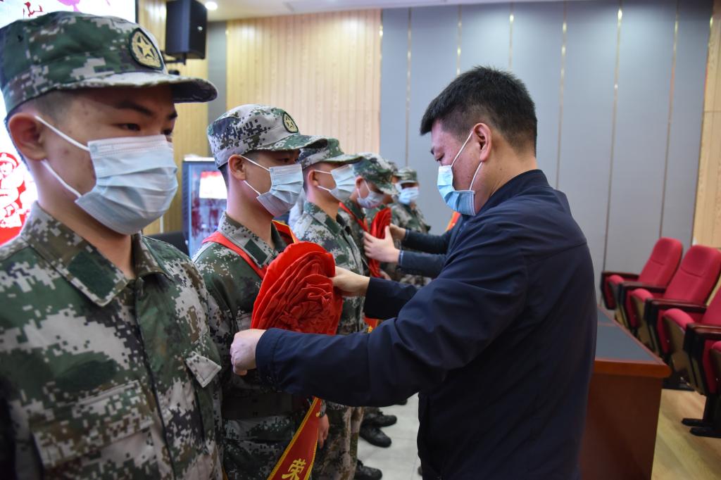 郭志江为新兵佩戴光荣