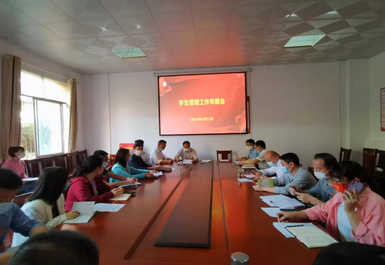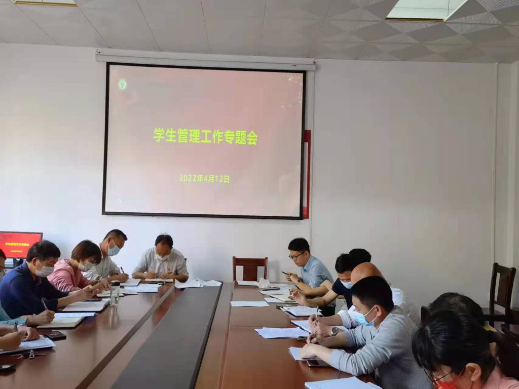 4月12日上午,在学生管理党支部党员活动室,学院召开2022年度春季学期学生管理工作专题会议,分析形势,查找问题,布置工作。学院副院长潘山出席会议,保卫处处长黄平文,学工处副处长黄志兵、涂斌、罗卫华,各分院党支部书记、学生工作负责人,以及19级毕业班辅导员代表参会。会议由潘山主持。