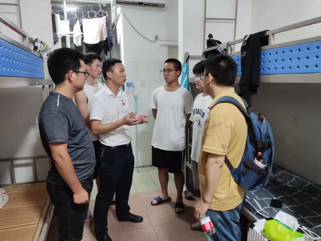 7月12日晚上,学工处副处长罗卫华及各分院负责人、竞赛指导教师走访学生竞赛场所与学生宿舍,慰问暑期留校参加学习培训、学科竞赛备赛的学生。